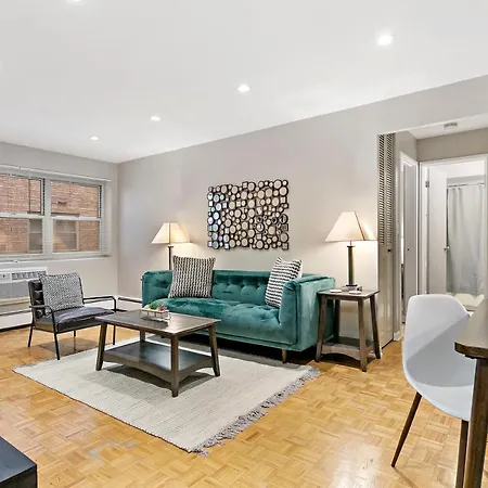 Este apartamento de 70 m^2 está a 25 km do aeroporto em Chicago O'Hare Internacional.